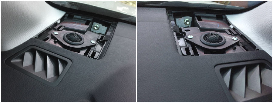 換掉原車極易失真的喇叭,前聲場(chǎng)用歌劇世家入門級(jí)喇叭iS265,這款喇叭高靈敏度,解析力也很出色,極易推動(dòng),人聲飽滿,音色甜美還原地極高,高音代替原高音喇叭安裝在儀表。