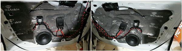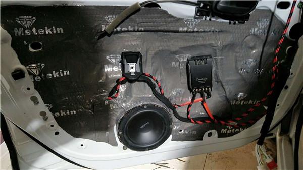 音響的改裝首先從車門隔音開始。車門做內(nèi)外雙層隔音,隔音之后的車門好比是經(jīng)過加強(qiáng)的音箱,達(dá)到試音柜的作用,可以讓喇叭重放出較佳的效果。