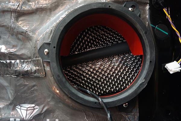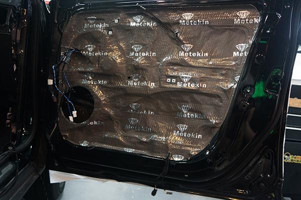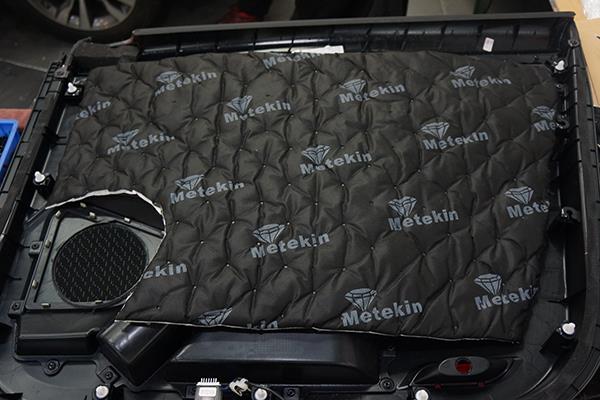 為了給汽車音響喇叭打造一個良好的工作環(huán)境,改裝技師采用美特靜隔音材料對車門做了雙層的隔音處理,這就像是在門板的周圍制作了一個箱體一般,一方面能夠減少噪聲對其的干擾,另外一方面還能夠有效的增加音樂的立體感。