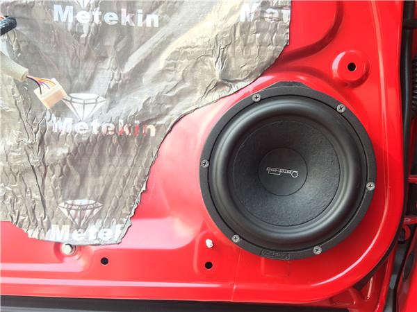 車門外層美特靜灰鉆減震板隔音處理,有效密封門板,減少外界噪音入侵,給車門喇叭提供更好的發(fā)聲環(huán)境。