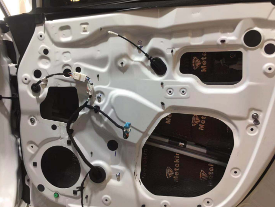 拆開(kāi)比亞迪宋的車門,門板內(nèi)部幾乎沒(méi)有任何的隔音處理,在行駛的過(guò)程當(dāng)中極容易產(chǎn)生門板共振,使得風(fēng)噪等噪聲直接傳入到汽車車廂內(nèi),影響車內(nèi)環(huán)境。因此,至上音樂(lè)的改裝技師使用隔音材料對(duì)汽車的車門做了雙層的隔音處理,使得汽車的隔音效果提升了不少。