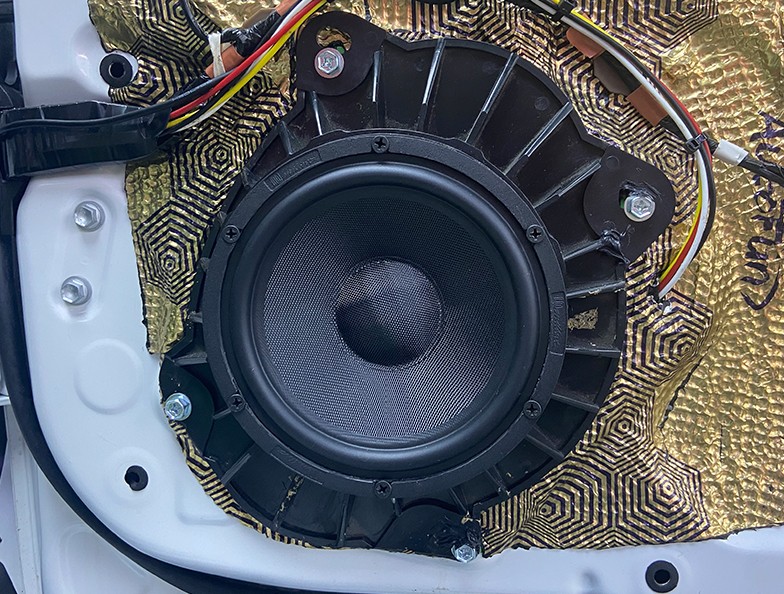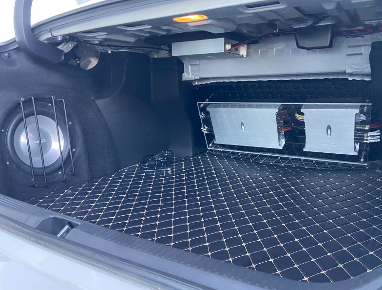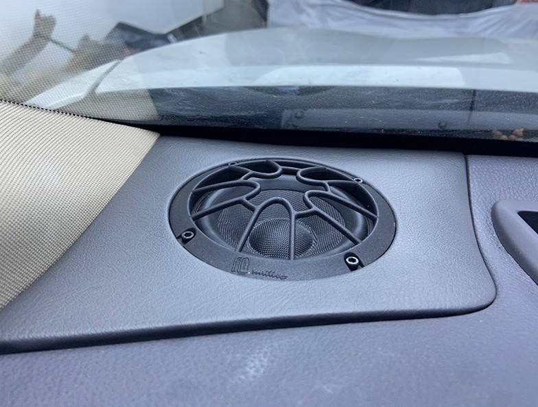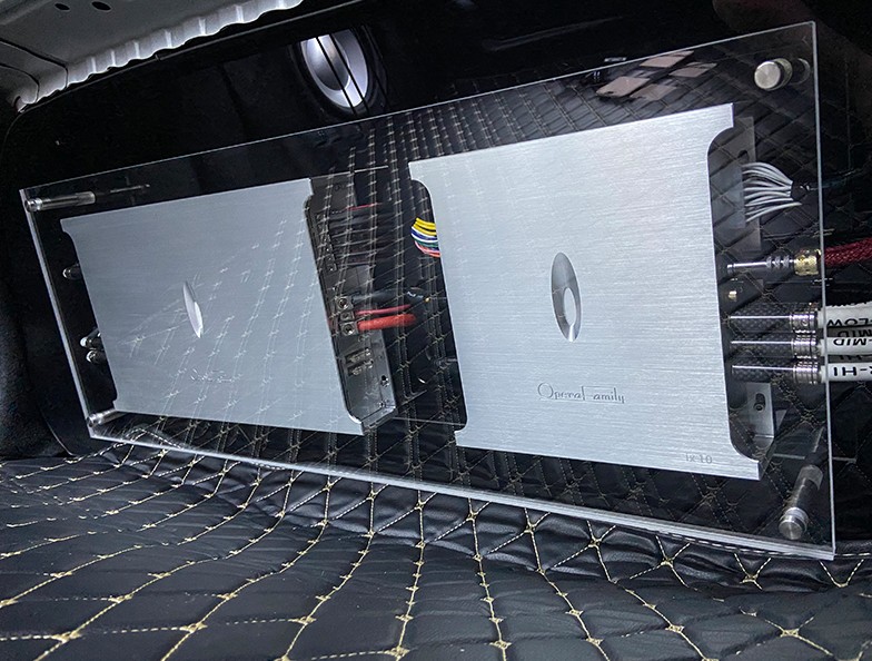 前聲場安裝一套邁博特神話三分頻喇叭,高音單元安裝于三角位,中音單元安裝在儀表臺上,這樣可以為駕駛位獲取非常好的聆聽體驗,中低音單元原位安裝在車門板,三頻之間相互呼應(yīng)銜接,在一臺歌劇世家VA 66六路功放的推動下,做主動分頻設(shè)計,讓三分頻出來不錯的音質(zhì)。