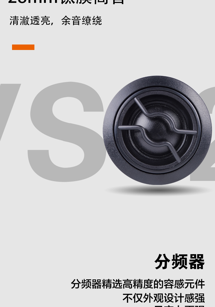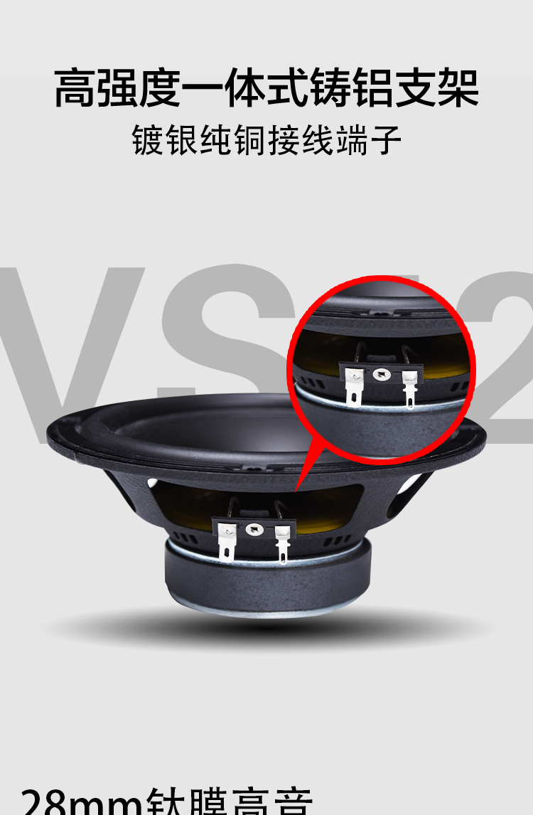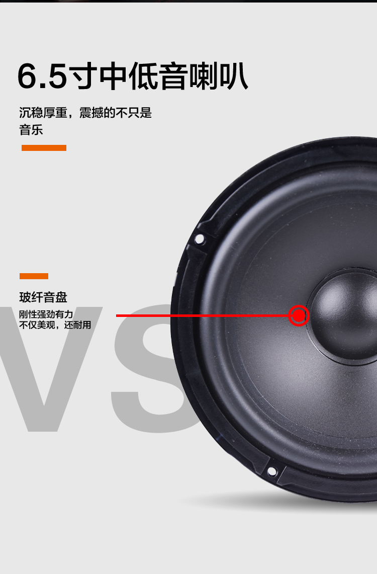靈敏度:89dB / 系統(tǒng)阻抗:4Ω / 額定功率:40W / 最大功率:80W 高音采用25芯日本昭和特殊隆絲膜,釹鐵硼強磁磁鐵; 6.5寸低音采用進口聚丙烯音盆,NBR橡膠邊,音盆既有剛性振膜的低音形態(tài),低頻下潛淺,厚實有力,又有后潤的中頻表現。