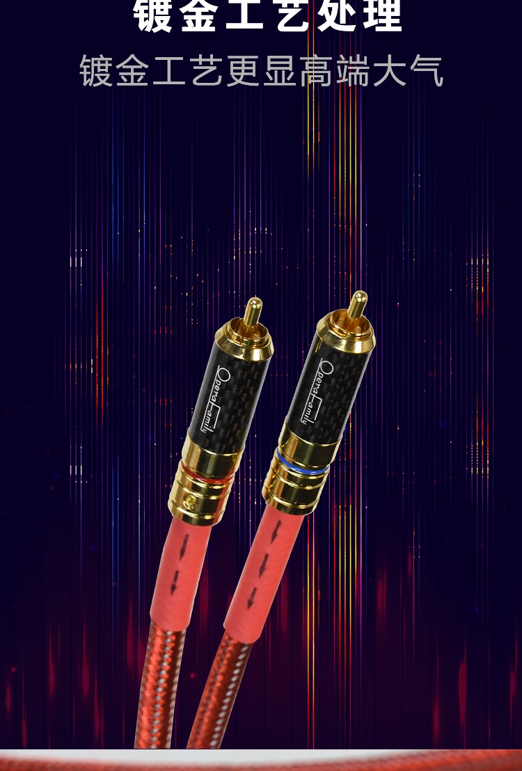 1米:雙芯4N鍍純銀方銅片,鍍純金純紫銅RCA插頭,信號線1對/盒 1.5米:雙芯4N鍍純銀方銅片,鍍純金純紫銅RCA插頭,信號線1對/盒 5米:雙芯4N鍍純銀方銅片,鍍純金純紫銅RCA插頭,信號線1對/盒