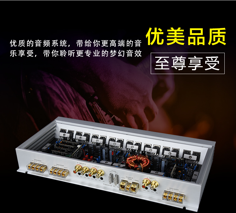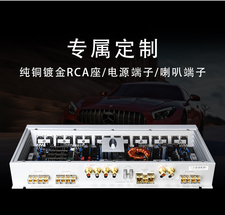定制純銅鍍金、電源端子、喇叭端子; 德國威瑪發(fā)燒級電容; LED透視式外觀設(shè)計; 開關(guān)式輸入增益調(diào)節(jié); 輸入功率:6x100W THD+N:<0.01% 信噪比:>100dB 頻響范圍:10Hz-30kHz 輸入靈敏度:0.5V-4V 輸入阻抗:10kΩ